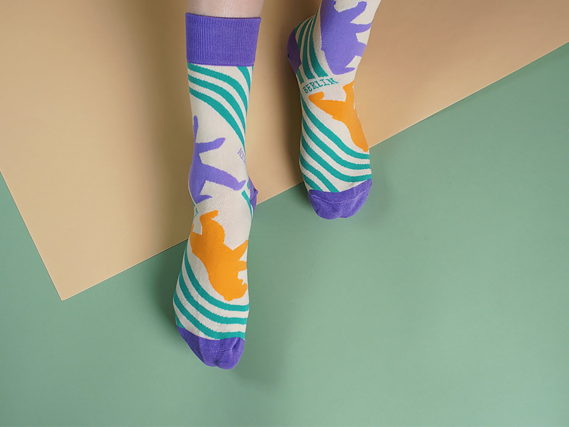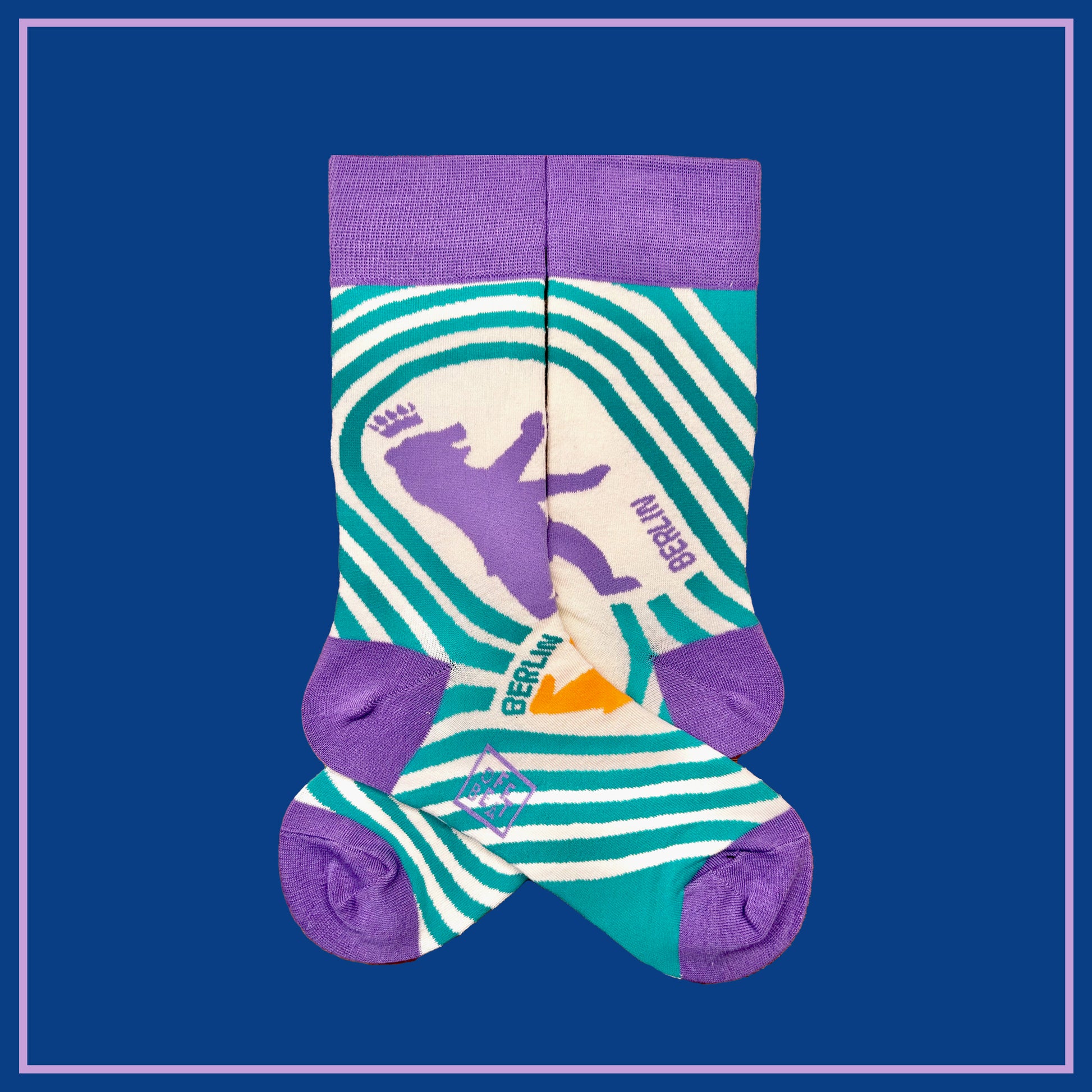 "Put some bear-y good fashion on your feet with our new Berlin bear pattern socks! They're perfect for taking a stroll around the city or just lounging around in style. Get your paws on a pair today!