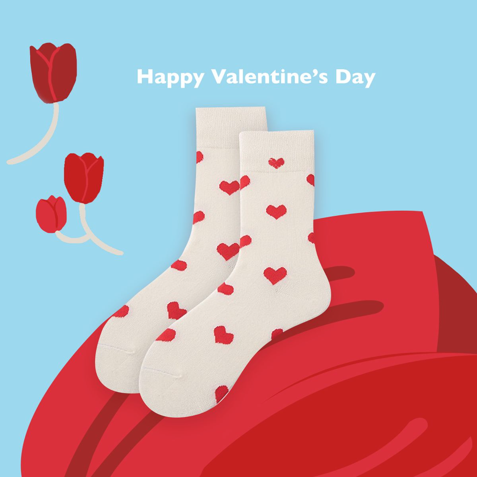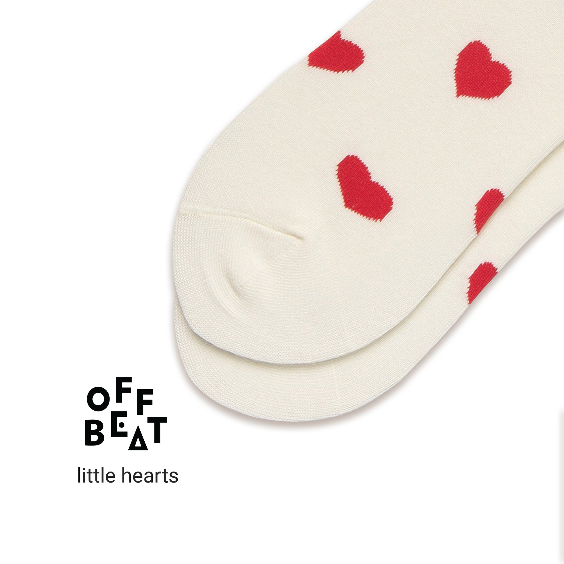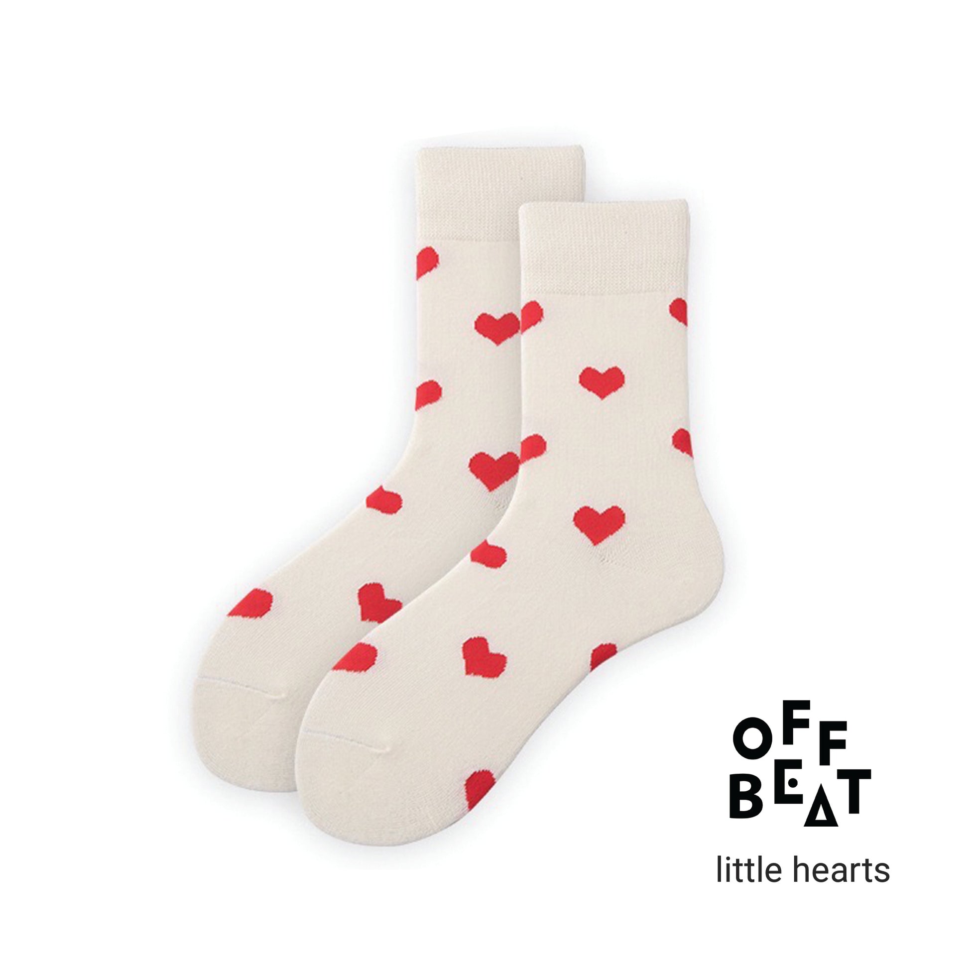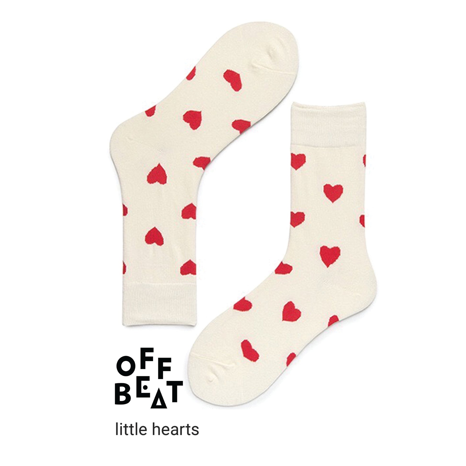 the body of these socks is white, with small red hearts as decoration. They have a simple look, but are very versatile.