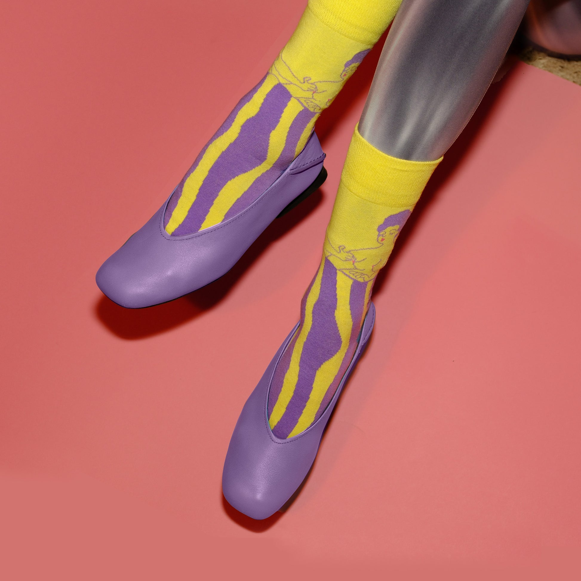What are the two girls doing? These socks are inspired by a classic French painting.