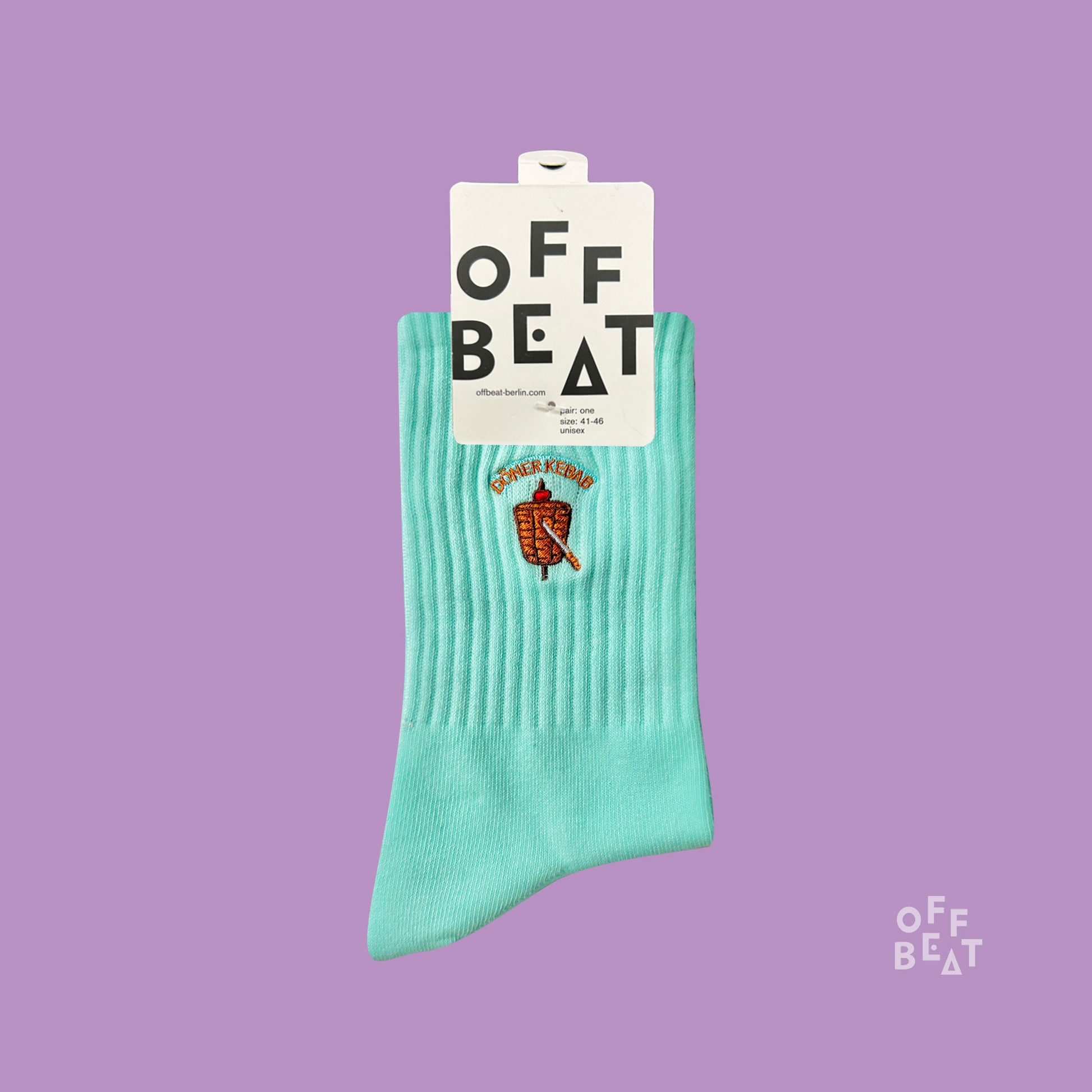 A pure turquoise background with a small, delicate Döner Kebab embroidery makes for a delightful and unique gift for Döner enthusiasts or a memorable souvenir from Berlin!
